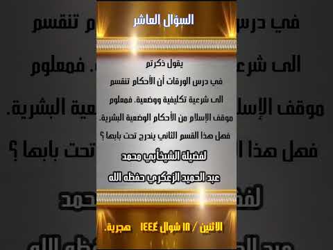 🔟 يقول ذكرتم في درس الورقات أن الأحكام تنقسم الى شرعية تكليفية ووضعية. فمعلوم موقف الإسلام من الأحكام الوضعية البشرية. فهل هذا القسم الثاني يندرج تحت بابها ؟