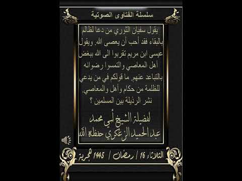 1️⃣ يقول سفيان الثوري من دعا لظالم بالبقاء فقد أحب أن يعصى الله. ويقول عيسى ابن مريم تقربوا الى الله ببغض أهل المعاصي والتمسوا رضوانه بالتباعد عنهم. ما قولكم في من يدعي للظلمة من حكام وأهل والمعاصي. نشر الرذيلة بين المسلمين ؟